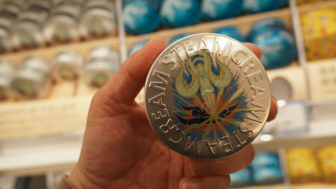 スチームクリームはハイデリンキック、アーモロートとミニオンがプリントされたケースに入った保湿クリームを販売。高温の蒸気を用いて植物由来の天然成分を乳化させた保湿クリームには、ラベンダー、ビターオレンジ、ダマスクバラ、カミツレ花のオイルが含有されており、鮮烈さの後に奥深さが残る香りとさらさらとした手触りが心地よかった。