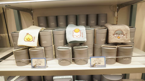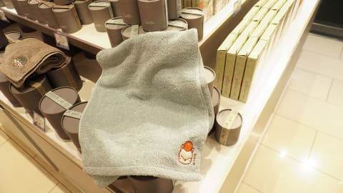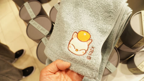 育てるタオルは洗うたびに糸が空気を含んでふんわりとふくらみ、ボリュームや吸水性が増していくという特殊技術で作られたタオルに、ナマズオ、モーグリ、デブチョコボの刺繍が入ったハンドタオルとフェイスタオルを販売していた。毛足の長い厚手のタオルに起毛素材で刺繍してあり、可愛さと肌触りの良さが同居している感じだ。