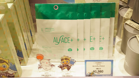 ほかにもモーグリとアルファのアクスタどちらか1種が同梱されたALFACE+の肌トラブル用の「センシティブマスク」、BAGGUのエコバッグ、NC帝國のステッカーやTシャツなど多数のコラボ商品が並んでいた。