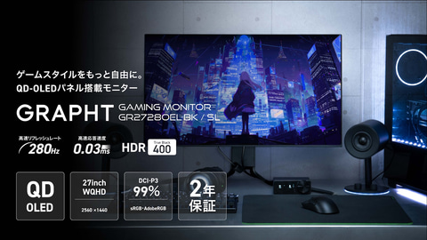 GRAPHT、WQHD/280HzのQD-OLEDゲーミングモニター「GR2728OEL-BK」3月27日発売!