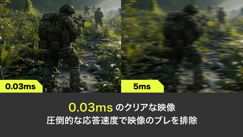 本製品は、有機ELと量子ドットを組み合わせたQD-OLEDパネルを採用するゲーミングモニター。27インチのWQHD解像度で、リフレッシュレートは280Hz、応答速度は0.03msと、残像感やブレを大幅に低減させつつ、滑らかかつ鮮明な映像を映し出す。