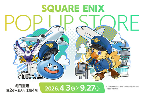 スクウェア・エニックスは、成田空港第2ターミナル本館4階 AIRPORT MALLにて4月3日から9月27日の期間「SQUARE ENIX POP UP STORE」をオープンする。営業時間は8時から20時まで。