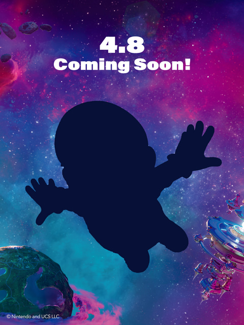公開された画像では両手を広げ、空を飛んでいるキャラクターのようなシルエットを確認。宇宙のような背景、さらには「Nintendo and UCS LLC」というコピーライトから、4月24日公開予定の映画「ザ・スーパーマリオギャラクシー・ムービー」とのコラボ予告ではないかと推測できる。