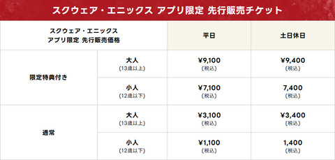 - 限定特典付き 9,300円〜(大人)