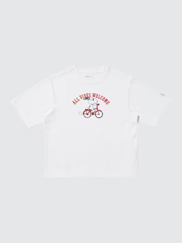 また、何気ない日々を楽しく過ごすスヌーピーを描いた「サニーデイ」をテーマにした、イラストとセリフが印象的なコレクションからKIDSサイズのUT4種および、UVカットキャップ3種が発売される。価格はUTが各990円、UVカットキャップが各1,500円。