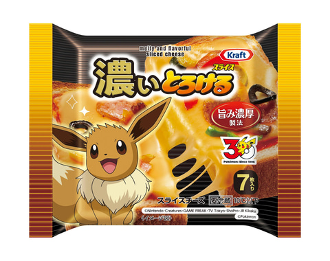 コラボパッケージは「クラフト スライスチーズ」がピカチュウ、「クラフト とろけるスライスチーズ」がカビゴン、「クラフト 濃いとろけるスライス」がイーブイとなっている。内包装にもポケモンを描き、開封のたびに楽しい時間を提供するという。