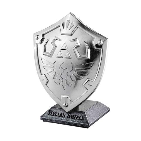 象徴的な紋章や金属の質感、勇者の装備としての存在感はそのまま、ハイリアの盾を忠実に再現。亜鉛合金製ならではのずっしりとした重みが、重厚感と高級感を演出する。第1弾として発売中の「はずる ゼルダの伝説 マスターソード」と並べて飾りたくなる商品となっている。