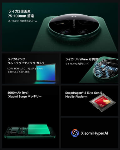 さらに、業界最高峰のSnapdragon 8 Elite Gen 5 モバイルプラットフォームを搭載。驚異的な電力効率を維持しながら、並外れたパフォーマンスを発揮する。ベイパーチャンバーに生体模倣(バイオニック)の微細構造を採用し、熱伝導率を劇的に向上させている。