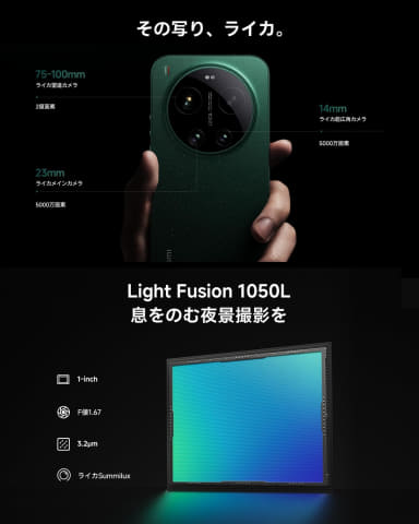 3群のレンズ構成により75~100mmの焦点距離を実現したSIMフリースマートフォン。最大400mmまでの光学相当ズームに対応し、業界最高峰の望遠性能を達成している。また、2億画素の1/1.4インチ超大型センサーを搭載。各レンズに高精度なマルチコーティング処理を施すことで、グレアやヘイズなどの光学的な問題を抑制し、極めて高い透明度を実現している。