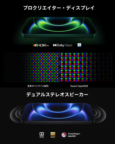 新しくアップグレードされた6.83インチの超大型ディスプレイを搭載。超薄型ベゼルデザインと1.5K高解像度により、より広い視野と息をのむようなディテールが味わえる。Xiaomi独自のスクリーン輝度素材により、ディスプレイは従来よりも高い発光効率を実現している。