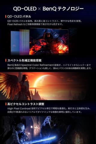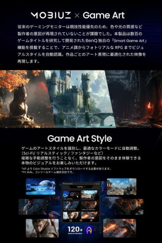 BenQ独自の「Smart Game Art」は、数百タイトルのデータを活用し、アニメ調まで自動で映像スタイルを認識。制作意図を忠実に再現し、キャラクターや背景の魅力を余すことなく表現できる。また、「スペクトル色補正」技術で色の階調を滑らかに整え、夕焼けや鮮やかな色彩も段差なく自然なグラデーションで描写。深みのある色彩とリアルな映像美で、作品世界の雰囲気を最大限に引き出す。