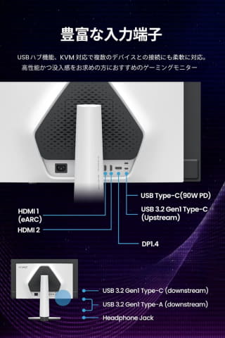 ユーザーにあわせた使い方が可能な便利なティルト調整機能搭載で長時間の利用でも疲れを軽減する。さらに、フリッカーフリー技術やブルーライト軽減、輝度自動調整機能(B.I+ Gen2)、カラーユニバーサルモードなど目に優しい機能が多数搭載されている。