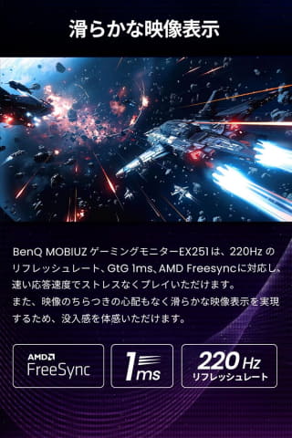 BenQ MOBIUZ EX251 ゲーミングモニター 24.5インチ/Full HD/220Hz/1ms/HDR 400
