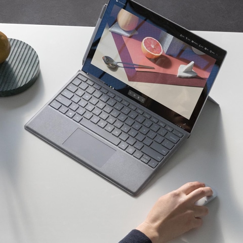 本製品は、別売りの専用キーボード(Surface Type Cover)を使用すれば、ノートPCとしても使える2in1タブレットPC。12.3型 PixelSense ディスプレイを採用し、CPUは第7世代 Coreプロセッサを搭載している。バッテリー駆動時間は最長13.5時間。165度まで調整できるキックスタンドで本体を自立させることができる。Surface Pen(別売)にも対応している。