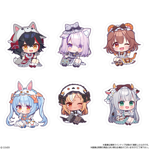 本商品はカバーのVTuberグループ「ホロライブ」に所属するメンバーのダイカットステッカーがあたるチョコクランチ。第2弾となる今回もオリジナル衣装姿のミニキャライラストを使ったステッカーで、2等身ほどのかわいいサイズ感のデザインが揃っている。