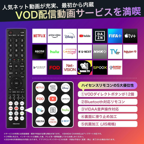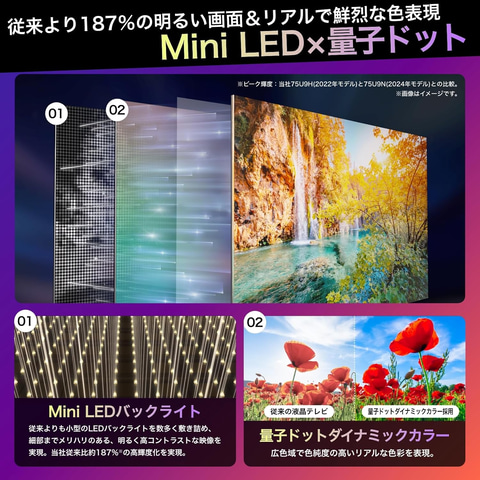 今回、細部までメリハリのある、明るく高コントラストな映像を実現する「Mini LEDバックライト」を採用した「U9N」シリーズの65V型4K液晶テレビ「65U9N」や、FPSや格闘、アクションゲームなど判定がシビアなゲームに適した「低遅延ゲームモード」を搭載した75V型4K液晶テレビ「75E60N」などがラインナップ。それぞれ期間中、割引価格で提供される。