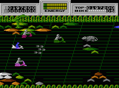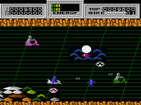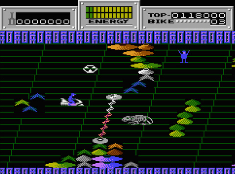 本作は1986年にニチブツから8ビットの家庭用ゲーム機向けに発売されたシューティングゲーム。かつては共存していた悪の部族たちによって故郷を侵略されたペトラ人たちを救出するため、救助用のホバーリングバイクに乗って戦う。
