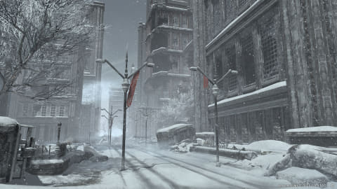 今や廃墟となって久しいガレマルドの北部。粉雪の舞うなかに佇む「クルティウス魔導工廠」は、ガレマール帝国の版図拡大を支えた、数多の飛空戦艦を製造した重要拠点である。