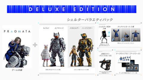 カプコンは、プレイステーション 5/Xbox Series X|S/Steam用SFアクションアドベンチャー「プラグマタ」を4月17日に発売する。価格は通常版が7,990円、デラックスエディションが8,990円。デラックスエディションには、ゲーム本編に加えて、DLC「シェルターバラエティパック」が付属する。4月24日にはNintendo Switch 2版も発売される予定。