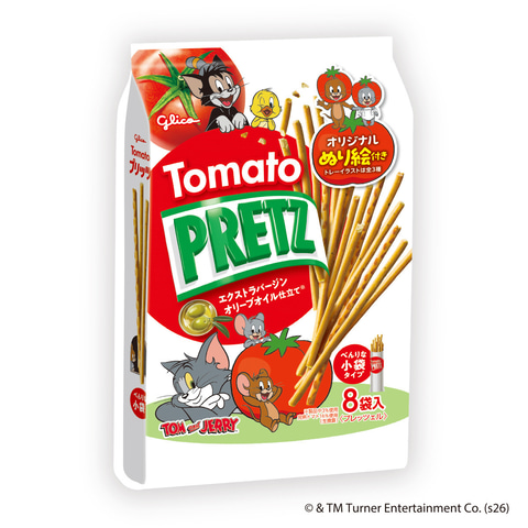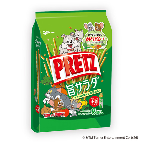 江崎グリコは、ワーナーブラザース・ディスカバリー グローバル・コンシューマープロダクツとのパートナーシップのもと、「トムとジェリー」をパッケージデザインに起用した「プリッツ旨サラダ<8袋>」と「トマトプリッツ<8袋>」を4月21日より発売する。価格はオープン。