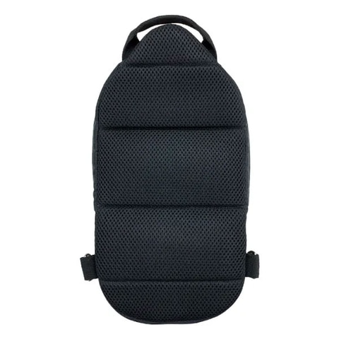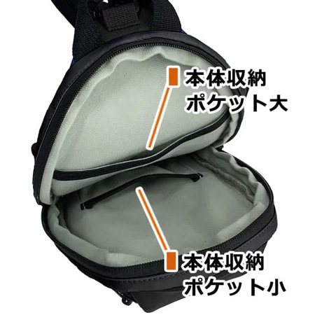 ケーブルなどを収納できる小物収納エリアにはポケット2つを備え、左右のファスナーでどちらからでも出し入れが可能。内部は起毛素材のクッションがあり、体に触れる背面はメッシュ生地となっている。