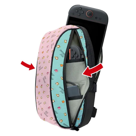価格は4,500円。Nintendo Switch 2本体と小物を専用の収納スペースで持ち運べるボディバッグで、左右どちらの肩にもかけられる仕様。本体用収納ポケット大小を備え、大にはNintendo Switch 2、Nintendo Switch、小にはNintendo Switch Liteを収納できる。