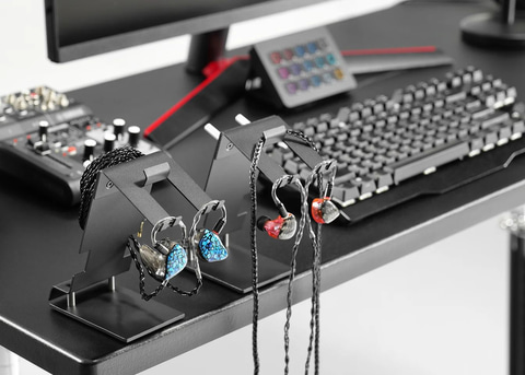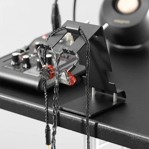 ユニットが大型化しがちなインイヤーモニターの形状を考慮し、薄型かつ幅広のフック設計を採用。一般的なヘッドホンスタンドでは安定しにくいイヤホンも、本製品なら左右のユニットが回転することなく、常に理想的な角度で待機する。音楽制作やゲーム中、使いたい瞬間に最短ルートで手に取れる、高いアクセス性を実現している。