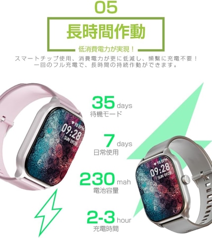 21.5gの超軽量設計と厚さわずか10.5mmのスリムボディで、長時間装着しても手首に負担を感じることなく、男女を問わず快適にフィットする。2.1インチのフルスクリーンディスプレイにより、視認性が大幅に向上し、直感的なタッチ操作が可能だ。