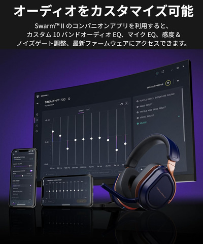 本製品は、Xbox Series X|S、Xbox One、PS5、PS4、PC、Steam Deck、Bluetooth搭載モバイルデバイスなどに対応したゲーミングヘッドセット。デュアルUSBワイヤレストランスミッターとBluetooth同時接続機能により、複数のデバイスを素早く切り替えて快適にゲームをプレイできる。