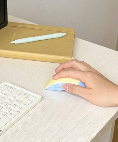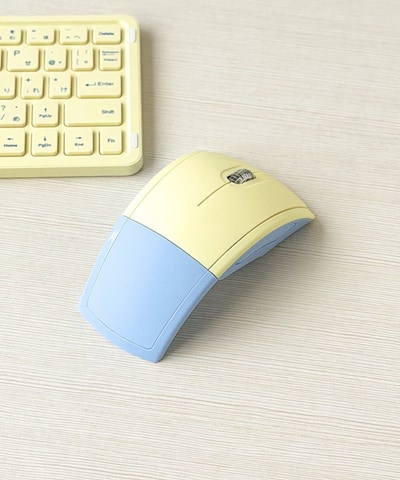 持ち運びに便利な薄型コンパクト設計のワイヤレスマウス。BluetoothとUSB Aレシーバーの2種類の接続方式に対応する。丸みを帯びたデザインが手にフィットし、シンプルで使いやすい3ボタンタイプで、本体の折り曲げにより電源のON・OFFが可能となっている。カラーは「アイボリー/グリーン」と「イエロー/ブルー」の2種類。