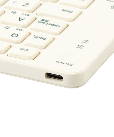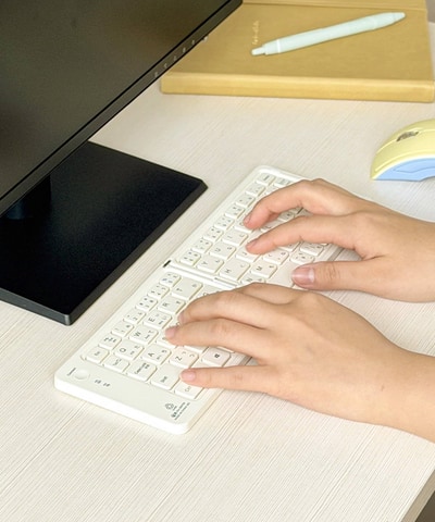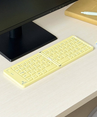折りたたんでコンパクトに持ち運べるキーボード。複数機器に接続できるマルチペアリングに対応している。カラーは「アイボリー/グリーン」と「イエロー/ブルー」の2種類が用意されている。