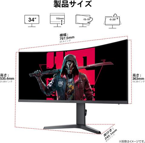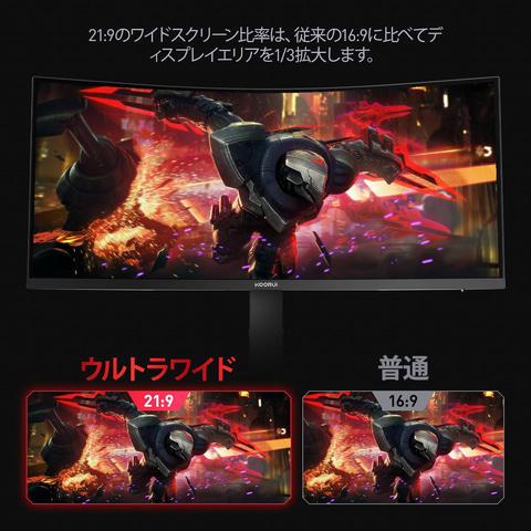 KOORUI 湾曲ゲーミングモニター 34インチ WQHD 180Hz 1ms 21:9 曲面 ウルトラワイド