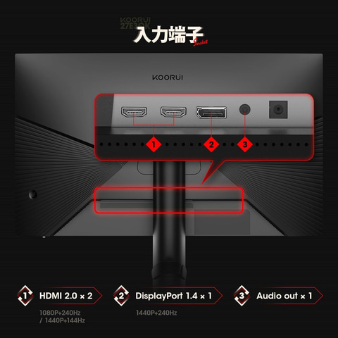 KOORUI ゲーミングモニター 27インチ WQHD(2560×1440)240Hz IPSパネル / 応答速度1ms「27E3QK」