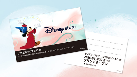 ウォルト・ディズニー・ジャパンは、東京都世田谷区内の二子玉川ライズ・ショッピングセンター内において、「ディズニーストア 二子玉川ライズ S.C.店」を5月27日にグランドオープンする。オープンを記念し、店舗限定アイテムの発売やプレゼントキャンペーンなどが実施される。