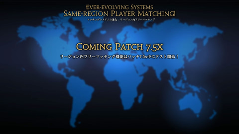 この他、データセンターの地域(欧州、北アメリカ、日本など)において地域全体でマッチングが可能となる。ワールド間テレポも可能となる予定で、パッチ7.5内でテストを開始する。