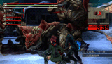 | 神機解放状態になることで、パワーとスピードが大幅にUPする(30秒間の時間制限あり)。2段ジャンプや猛ダッシュといった特殊アクションを行なうことも可能になる。このチャンスを活かし、一気に攻撃を畳み掛けて勝負を決めてしまおう | ||