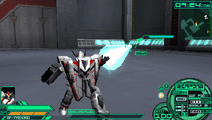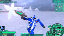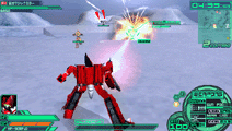 | バトロイド形態及びガウォーク形態では、ガンポッド(そうでない機体は手持ちの武装)によるミサイル落としを、ファイター形態では、敵からのミサイルをそらせる、フレアーを放出する。ミサイル落としが成功すると、画面上に「BREAK」と表示される |