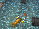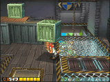 | ロボのときには「つかむ」、「投げる」、「使う」を中心としたアクションが可能になる。敵を投げたり、重いコンテナを軽々と持ち上げて運ぶことができる | ||