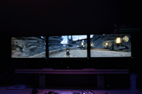| E3の「FF XIV」ブース内に設置された3D Sround。3台のモニターを使って立体ゲームを楽しめる |