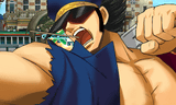 | 足元を狙う仁義激闘破にはじまり、ジャンプ蹴り上げ、ドラゴンアッパー、鉄山靠を連続で決め、アーマーを脱ぎ捨てる。飛び散ったアーマーで敵にダメージを与え、「いてまうぞコラァ!」と叫びながら渾身のストレートが炸裂する | ||