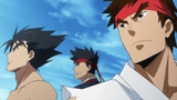 | すべての武器を駆使した零児の連続攻撃。マグナムを連射し、鬼門封じを解除すると敵が吹き飛び、そこへ零児の霜麟、小牟の水憐が同時にヒットしてフィニッシュ | ||