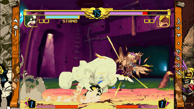 本作の主人公。近距離パワー型のスタンド「星の白金(スタープラチナ)」を操る。長いリーチと攻撃力の高い通常技を持ち、スタンドと本体とで絶え間なくラッシュを仕掛けられるのが最大の強み。