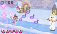 また、各ワールドのボスとの戦いでは、お手本となる相手の攻撃リズムを覚えて、それを忠実に繰りかえすことで応戦する遊びが楽しめる。