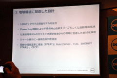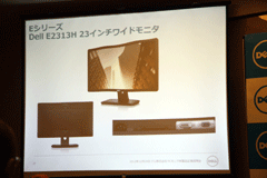 今回発表された新製品としては、エントリーモデルとなるEシリーズの最新モデル「E2313H」を発表したのみで、多くの時間を同社の豊富なモニターラインナップの紹介やサポートの充実ぶり、そして地球環境へ配慮の説明に割いていた。
