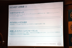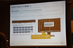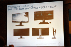 また、説明会の後半では、11月15日に発売したばかりの29インチウルトラワイド液晶モニター「U2913WM」と、Windows 8での利用を意識したタッチパネル式のモニター「S2340T」のデモを行なった。これらは共に好調なセールスを記録しており、今後も両ラインを拡充していく方針を改めて表明した。