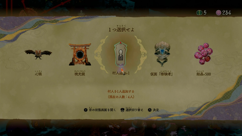「畏界遷宮」の鍵となるのがこのモード独自のビルドシステムだ。本編ではストーリーを進めるにつれて村人の職業や主人公「宗」のアクションや装備も充実していったが、このモードでは比較的初期状態の「宗」を強化しながら進んでいく形となっている。