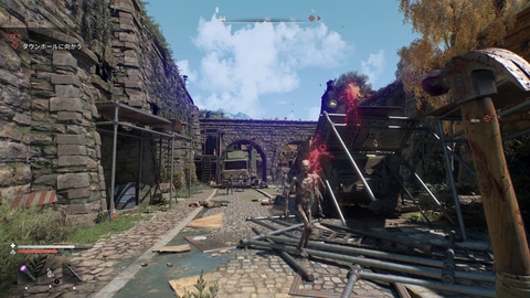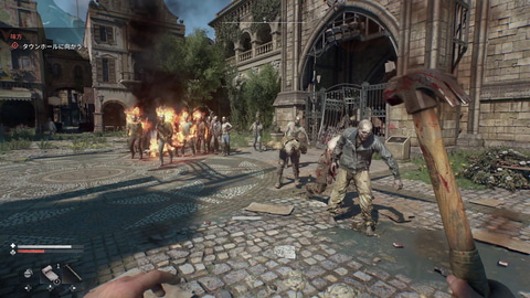 戦い方という面でもバラエティがある。近接武器で殴ったり切りつけたりするのはもちろん、弓やハンドガンで遠方から攻撃することもできる。火炎瓶を投げるようなこともできた。あらゆる武器、あらゆる道具を使ってこの惨劇から生き残らなければならないのだ。