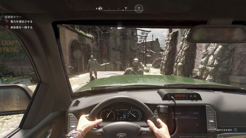 一方、平地で一切動けないわけではない。今作では車も登場し、それで走り抜けることもできる。パルクールに加えた移動手段が増えたのは魅力の1つだ。当然徒歩よりも移動は早いし、ゾンビに捕まるリスクもほぼない。もっともゾンビをなぎ倒しまくれるような圧倒的な力はなく、ダメージには気をつける必要はある。