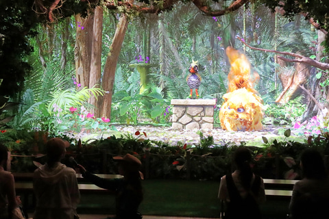 「やんばるフレンズ」は屋内施設でヤンバルクイナのキャラクター「ジャン」と実際に会話ができるアトラクション。東京ディズニーシーの「タートル・トーク」のように、リアルタイムでキャラクターとコミュニケーションできるものをイメージするとわかりやすいかと思う。どちらかというと、子どもの参加が意識されているものだ。