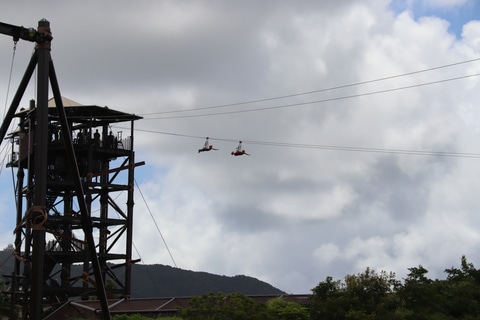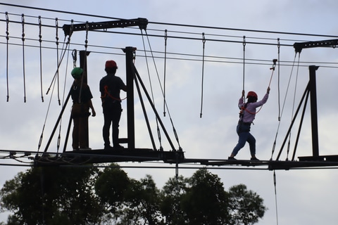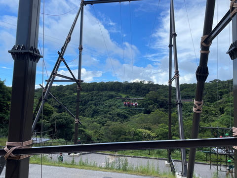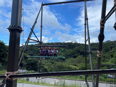 「ジャングルエクストリームズ」は合計7つの体験が用意されている。いずれもハーネスや命綱を付けて体験するもので、体一つで大自然の上空を進むスリルを味わえる。